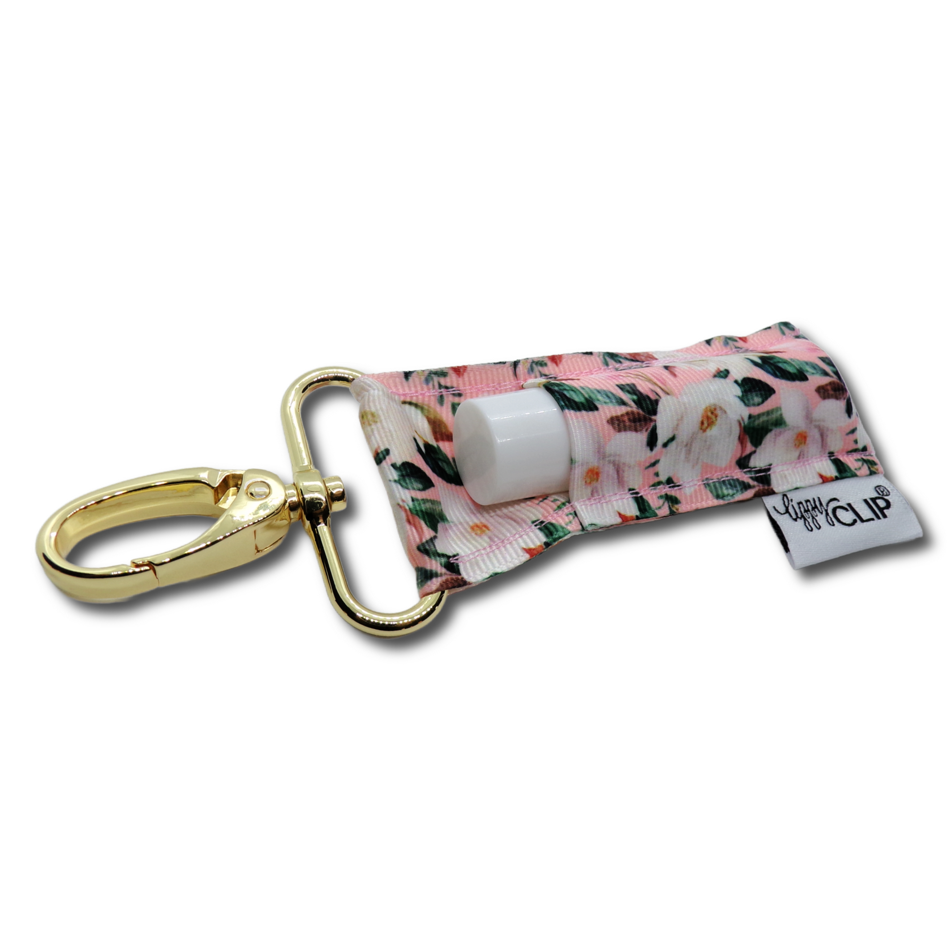 The LippyClip® perfectly holds cylindrical lip balms such as Chapstick, Carmex, Blistex and Burt's Bees, and easily clips on a keyring, purse hardware, diaper bag, backpack, etc. Please note that lip balm is not included.